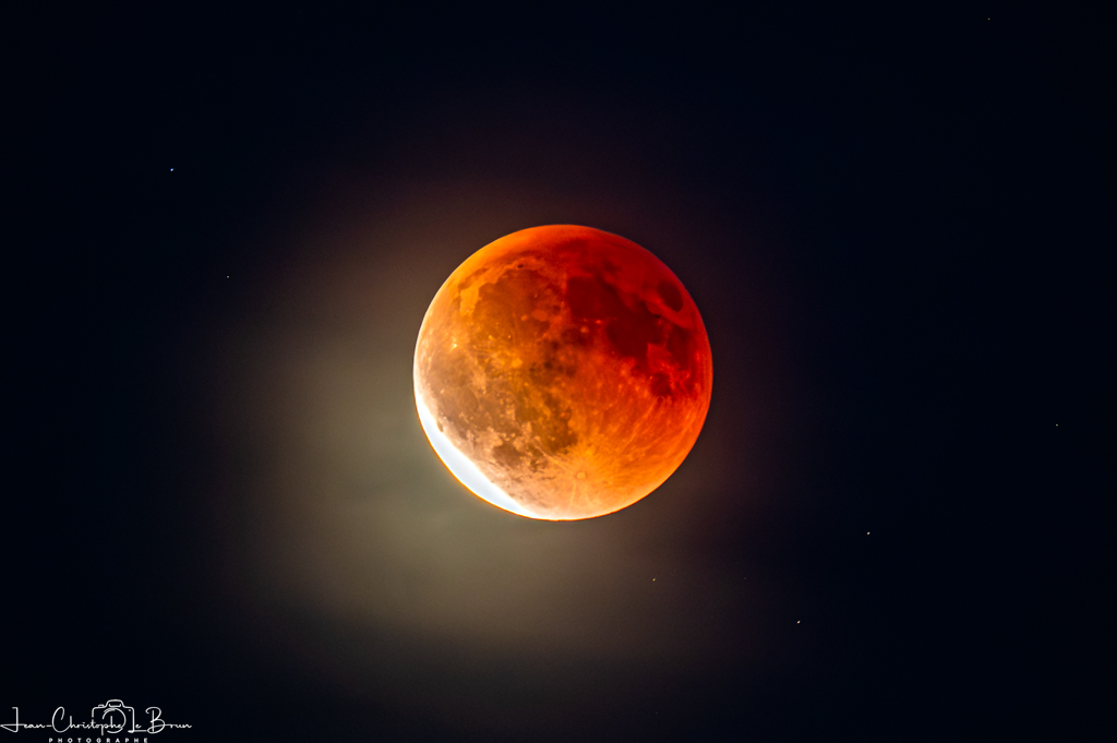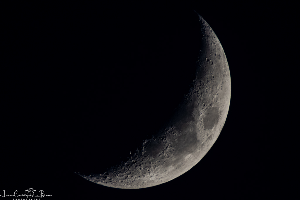 Prenez un boitier plein format, un téléobjectif de 500 mm couplé à un doubleur et passez votre boitier en mode APS-C. Le temps de pose que je vous recommande est de l’ordre du 1/100 s pour contrer les vibrations et le mouvement de la lune mais vous pouvez descendre jusqu’à la seconde. Là encore, la mise appoint manuelle est recommandée mais certain appareils arrivent à gérer l’autofocus sur la lune. Pour la sensibilité, ce sera au jugé, en fonction de la phase de la lune et de sa hauteur sur l’horizon.